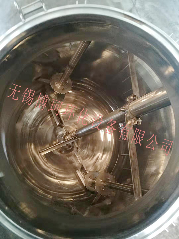 攪拌分散釜由鍋體、鍋蓋、攪拌器、電加熱油夾管、支承及傳動裝置、軸封裝置、溢油槽等組成,并配有電加熱棒及測溫、測壓表。由于用戶因生產(chǎn)工藝、操作條件不盡相同,攪拌形成一般有錨式、漿式、渦輪式、推進式或框式。支承座有懸掛或支承式二種。夾套內(nèi)放置導熱油,由電熱棒加熱,夾套上開有進、排油、溢測量、放空及電熱棒、測溫等接管孔。夾套外壁焊接支座,鍋體下部開有放料口。